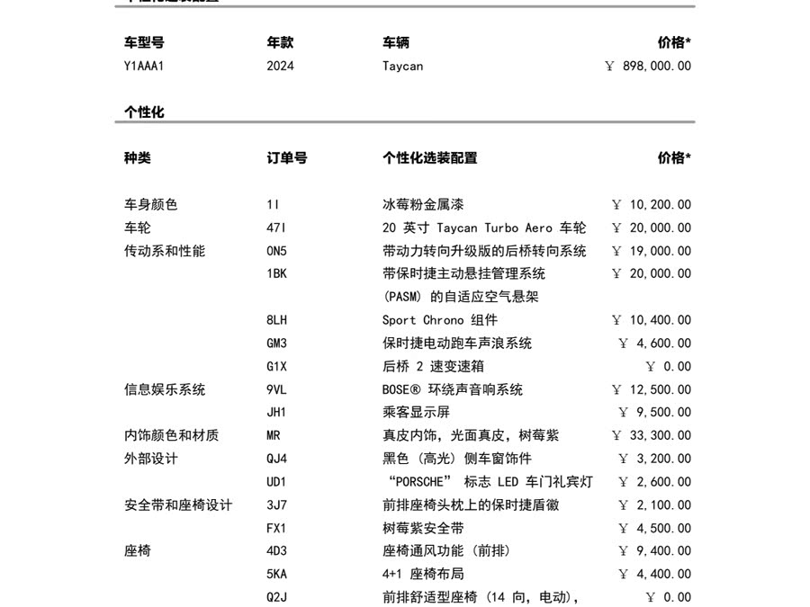 Porsche Taycan 2024 года, один владелец, Dr. Chase. S-Class, пробег всего 14 000 км, цвет «Морозно-розовый» с акцентами цвета «Малиново-фиолетовый», идеальная комплектация.